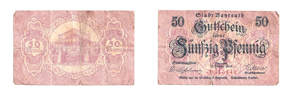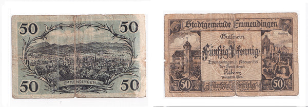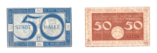 A set of 4 notgeld emergency money notes from, Germany. A set of 50 pfennigs. Nice high grade small notes.