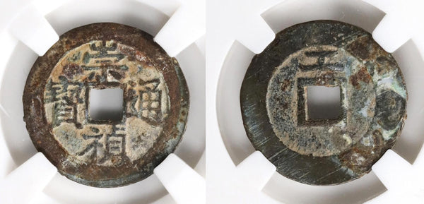 Four Chinese characters - Chong Zhen Tong Bao (closed head of Tong, two-dot Tong) / Gong above the hole. 24mm, 3.1 grams. The Board of Works mint, issued in 1628-1644 AD. Hartill 20.295.